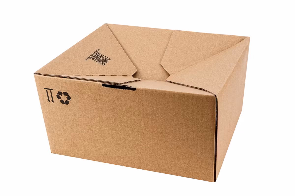 E handelslåda med snabb botten ochdubbel tejp remsa. Enkel och smidig att vika ihop. Öppnas med rivbandet allt för att det ska vara enkelt . Snabb boxen finns i olika storlekar och är i 2mm brun kartong.